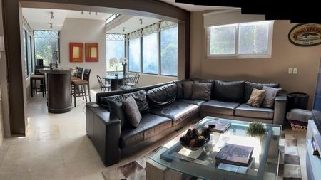 Estancia, desayunador , área de TV , amplio salón de juegos,con barra, salida al jardín. Terraza. Riego por aspercion. Pisos de madera . Celdas solares, ventaneria alemana.